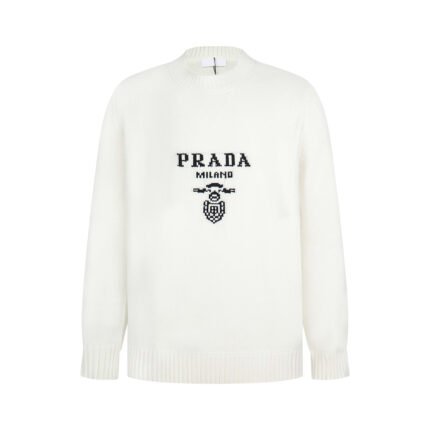 Prada Wool And Cashmere Crew-Neck Sweater With Embroidered Logo Black (UMB223-1YMW-F0002-S-211)