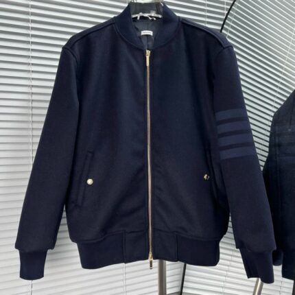 THOM BROW Navy Wool Cashmere Flannel Blouson Tonal 4-Bar Jacket (MJO030A-06393-415)