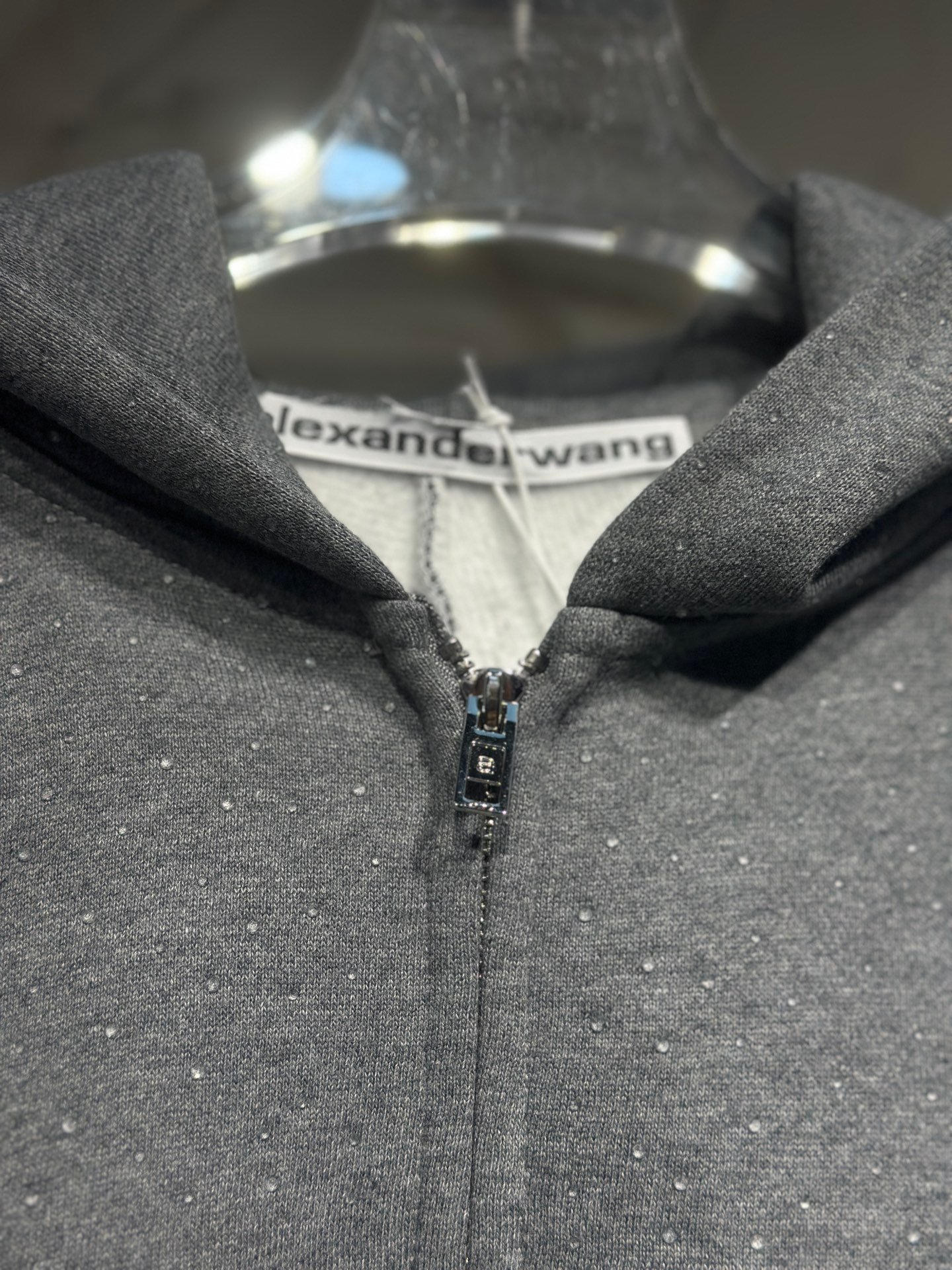 Alexander Wang Grey Hotfix Terry Zip Hoodie(UCC4252074079)