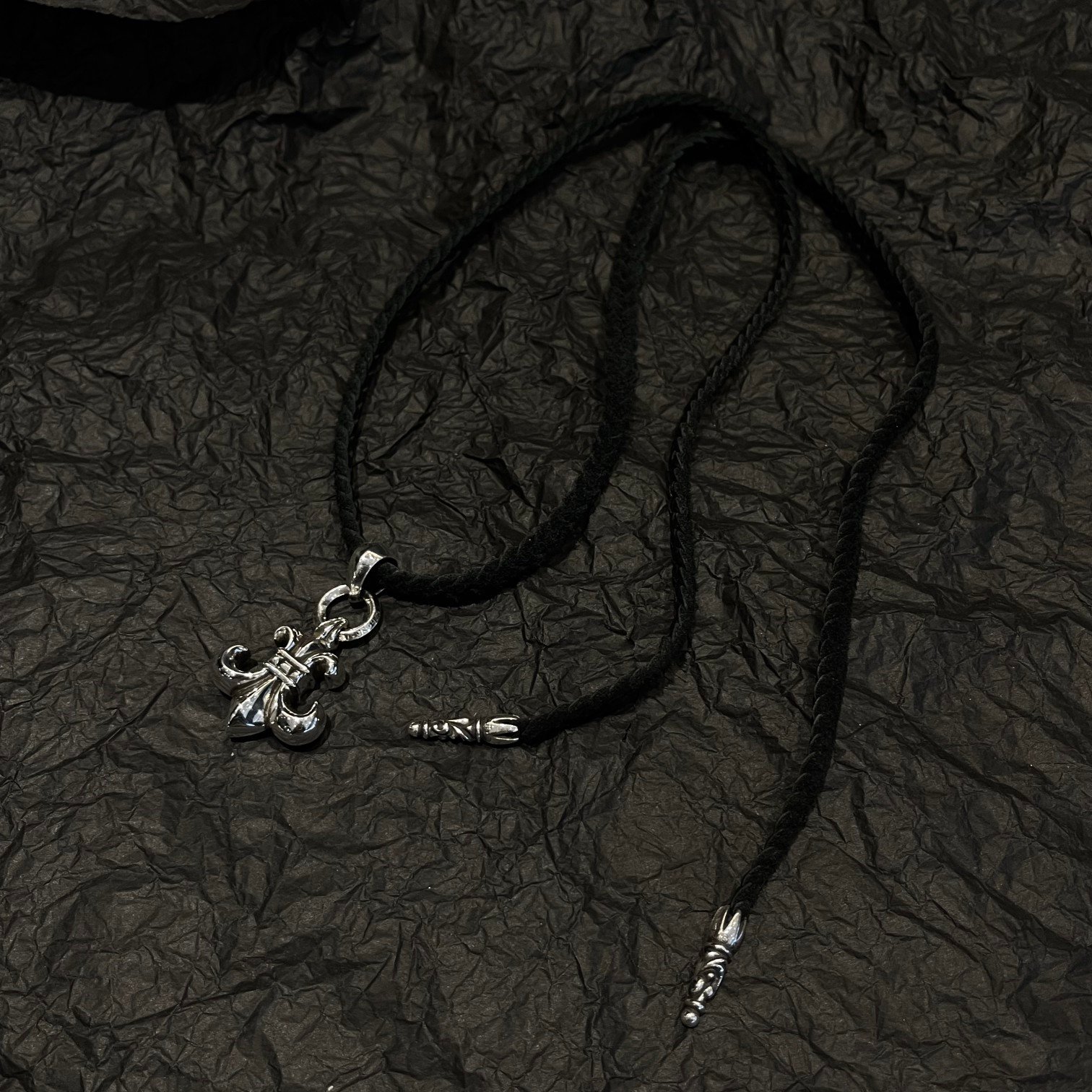 CHROME HEARTS Scout Flower Leather Cord Braided Necklace(CHROME HEARTS 062)