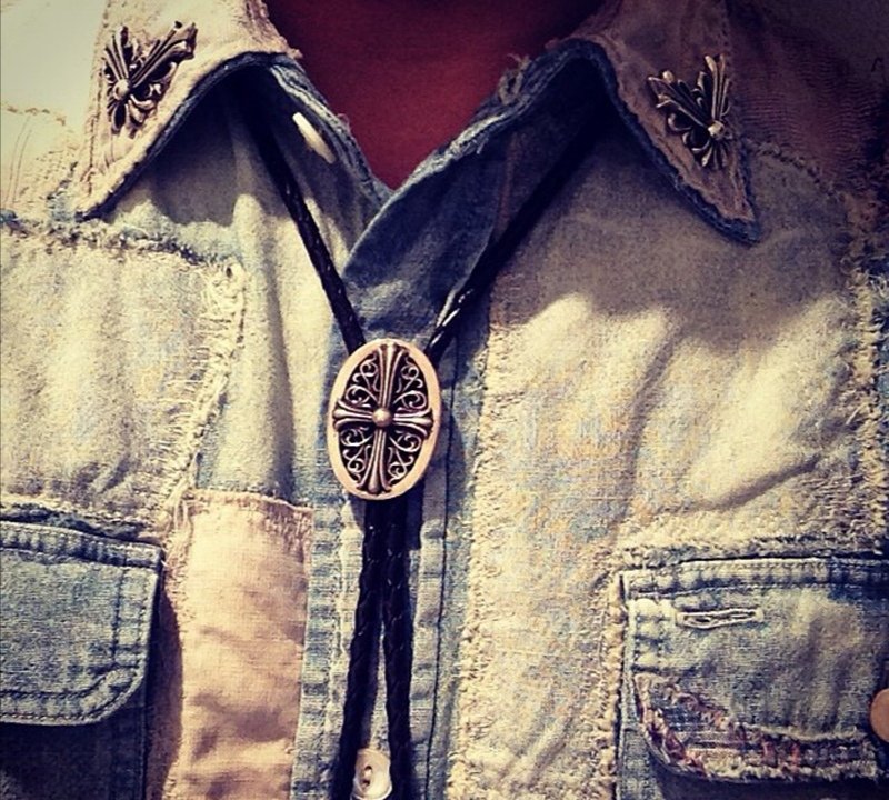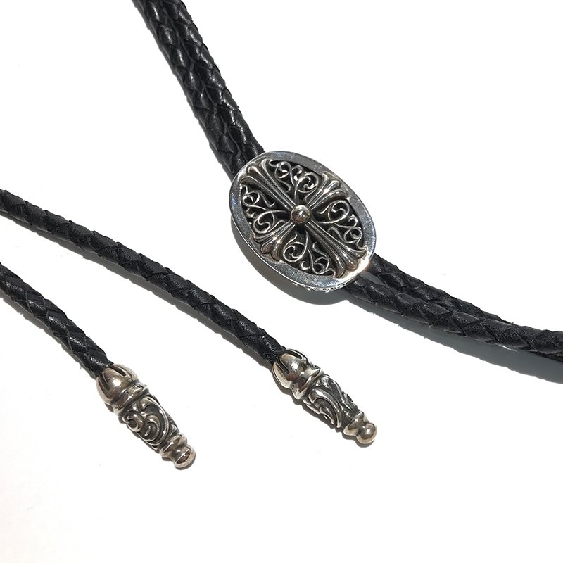CHROME HEARTS Sterling Silver Cross Arabesque Leather Necklace(CHROME HEARTS 098)