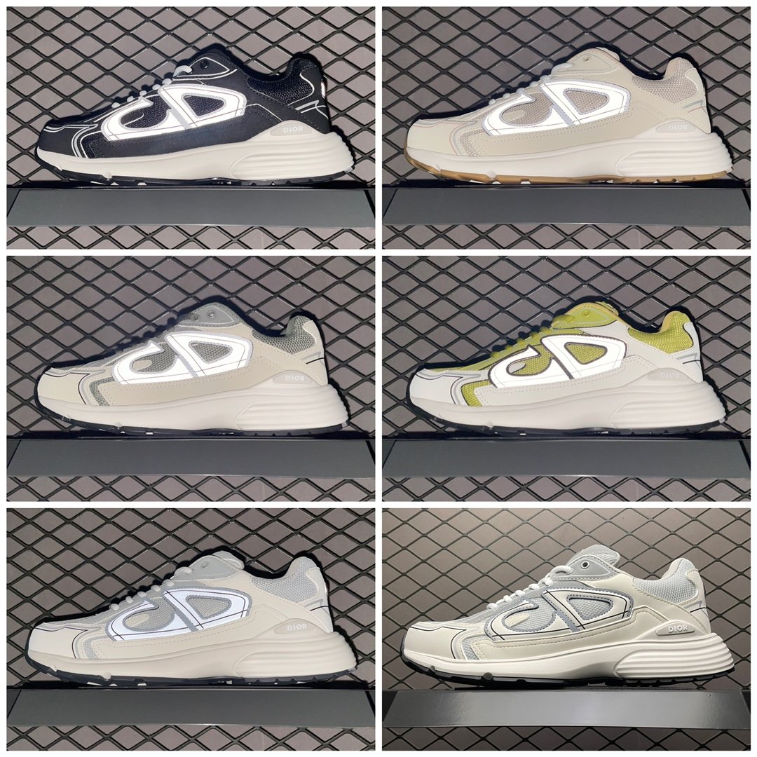 今回新たに登場したDior B30は、フランスのモダニズムからインスパイヤされた、流線形グラフィックの特徴的な”CD”ロゴがアクセントを加えた。そしてマイクロファイバーやメッシュなどの比類のないテクニカル素材を搭載することで、柔軟性と軽量化に成功し、ランニングの世界にオマージュを捧げた。