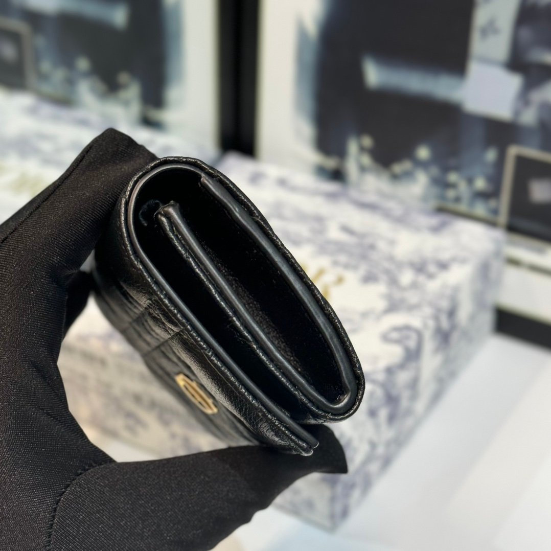 Dior Caro Cannage Bifold Coin Case in Black Leather(S5132UWHC-M900)