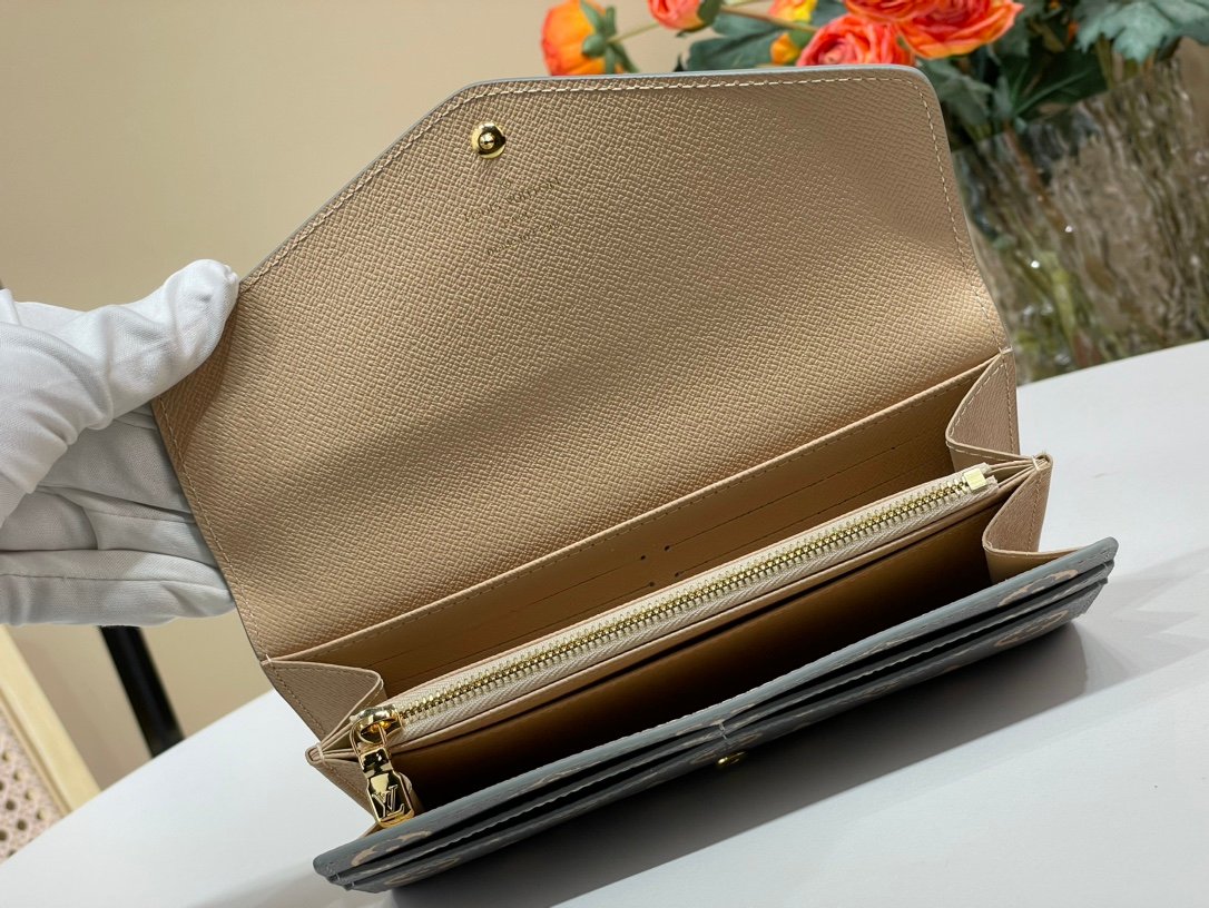 モノグラム・キャンバスにグレインレザーを組み合わせたルイ・ヴィトンのクラシカルな長財布「ポルトフォイユ・サラ」。大容量の2つのコンパートメントと中央のファスナー付きコインポケット、複数のカードスロットを備えたエンヴェロップ型のデザインがエレガントな魅力を放ちます。身の回りの必需品をしっかりと収納するのに最適なアイテムです。