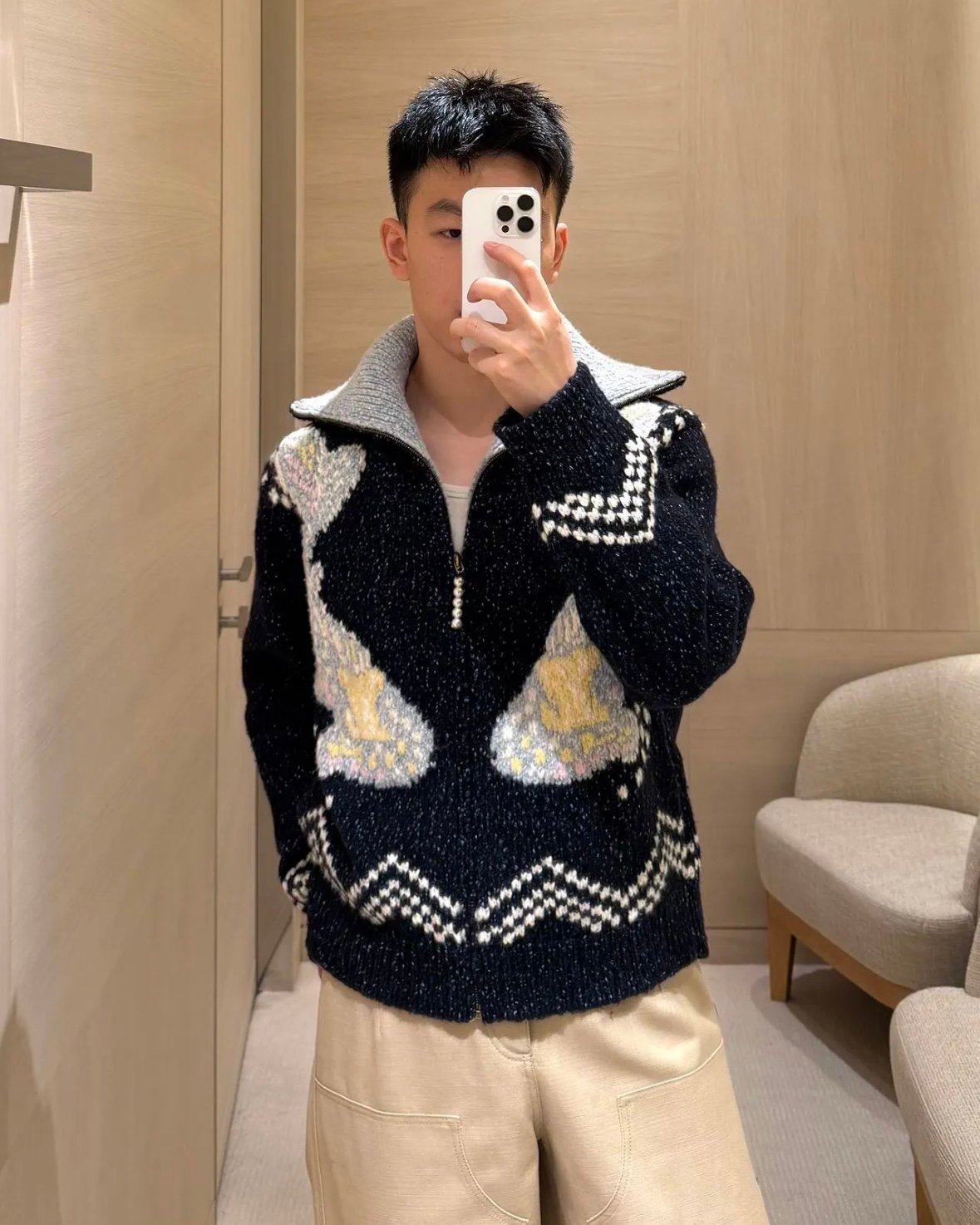 Louis Vuitton zip-up knitted belted jacket(1AIMAY)