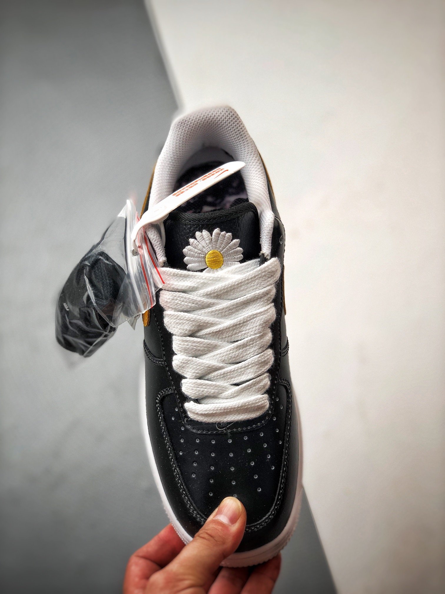 通常NIKEロゴが配置されるシュータンにはブランドアイコンである花の刺繍「デイジー」を施した。