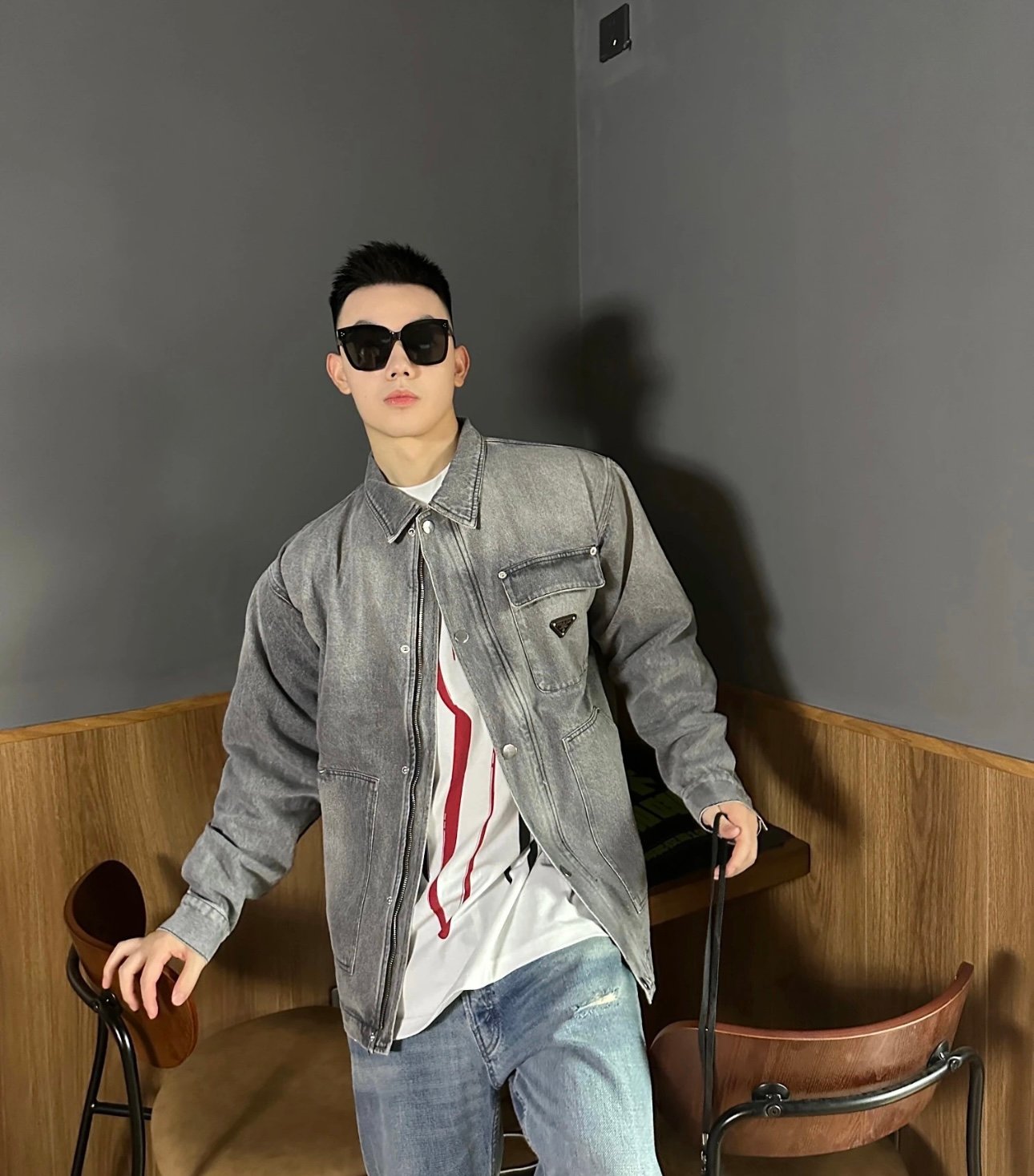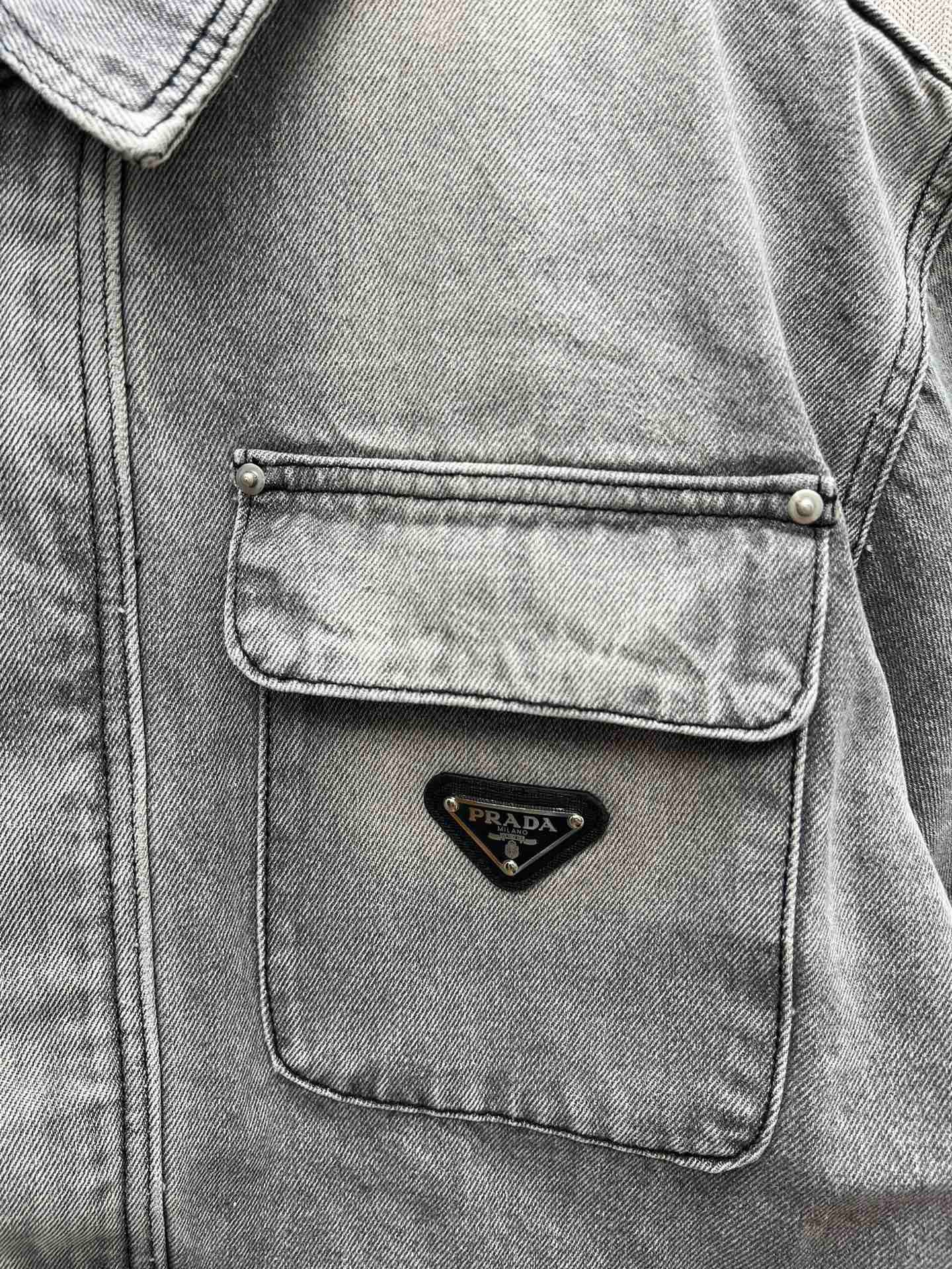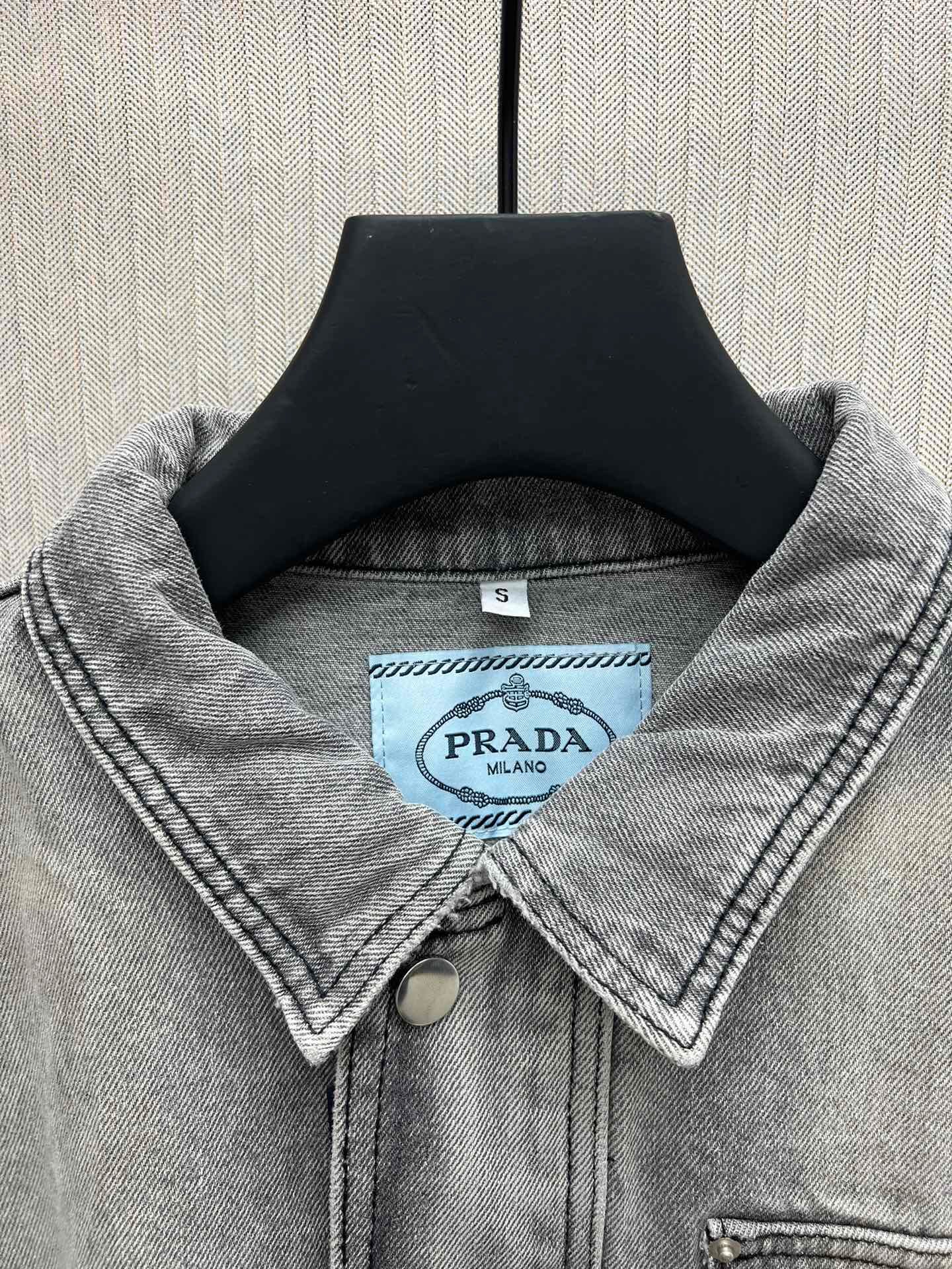 PRADA Denim Jackets Men Gray (GEB231-13B4-F01AY-S-232)
